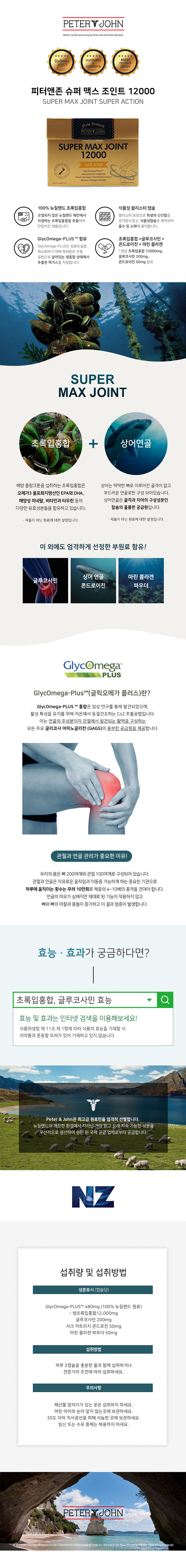 2024년 새버젼 제품 입고되었습니다! GlycOmega-PLUS 함유 초록입홍합 + 글루코사민 + 샤크 카틸리지 콘드로이친 + 마린콜라겐 소화 및 흡수에 용이한 식물성 캡슐 피터앤존 슈퍼 맥스 조인트 12000 Super Max Joint 12000 60vege capsules GlycOmega-PLUS™(글릭오메가 플러스)란? GlucOmega-PLUS™ 홍합은 임상 연구를 통해 발견되었으며, 활성 특성 유지를 위해 저온에서 동결건조하는 Co2 추출공법입니다. 이는 연골의 주성분이자 관절에서 발견되는 활액을 구성하는 모든 주요