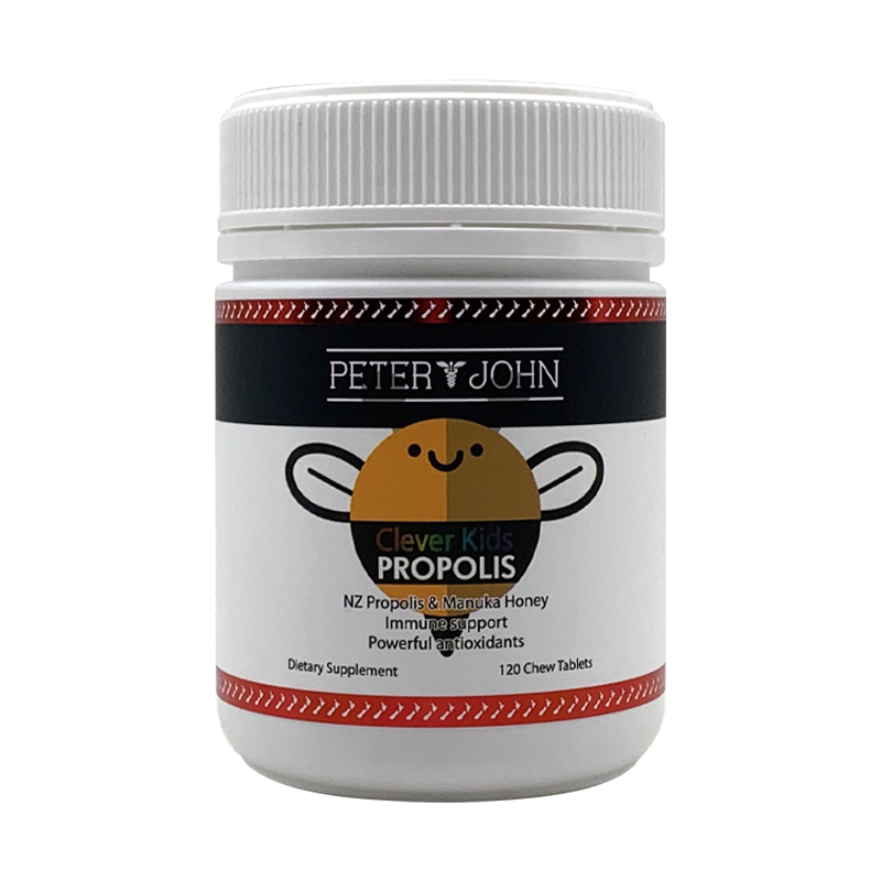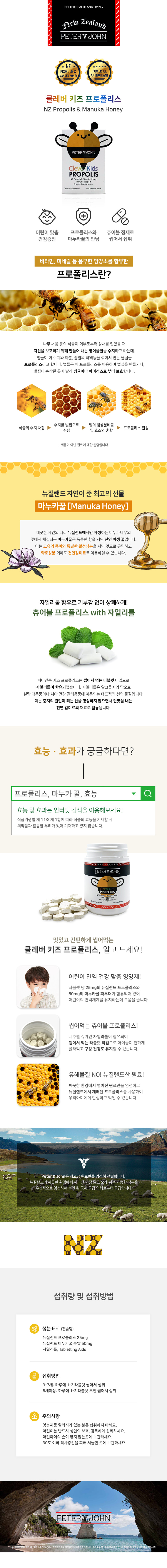 어린이 건강 프로폴리스 & 마누카꿀 맛있고 간편하게 씹어먹는 프로폴리스 피터앤존 키즈 프로폴리스 Clever Kids Propolis 120chewable tablets 뉴질랜드 프로폴리스 & 마누카꿀 파우더 피터앤존 클레버 키즈 프로폴리스는 각 타블렛 당 프로폴리스 25mg, 마누카 꿀 파우더 50mg를 함유하고 있습니다. 비타민, 미네랄 등 풍부한 영양소를 함유한 프로폴리스란? 나무나 꽃 등의 식물이 외부로부터 상처를 입었을 때 자신을 보호하기 위해 만들어 내는 방어물질을 수지라고 하는데, 벌들이 이 수지와 화분, 꿀벌의 타액들